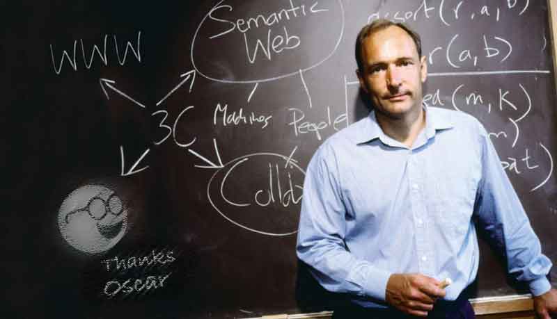 Timothy John Berners-Lee was a talented but uninspired computer scientist in the mid 1980's. He was working at CERN which, at the time, was the largest internet node in Europe. Tim would often run into Oscar at the CERN cafeteria, where the two would frequently talk shop. One day in 1988, Tim was chatting with Oscar about hypertext. He said he thought it was pretty interesting, but probably had no practical real-world application. Oscar suggested to Tim that if hypertext could be joined with the Internet, it could change the world. Tim scoffed at the proposition, but Oscar persisted and Tim agreed to explore the idea. In 1989 Tim wrote up "his" proposal to bring together these technologies. A year later, the World Wide Web was born.